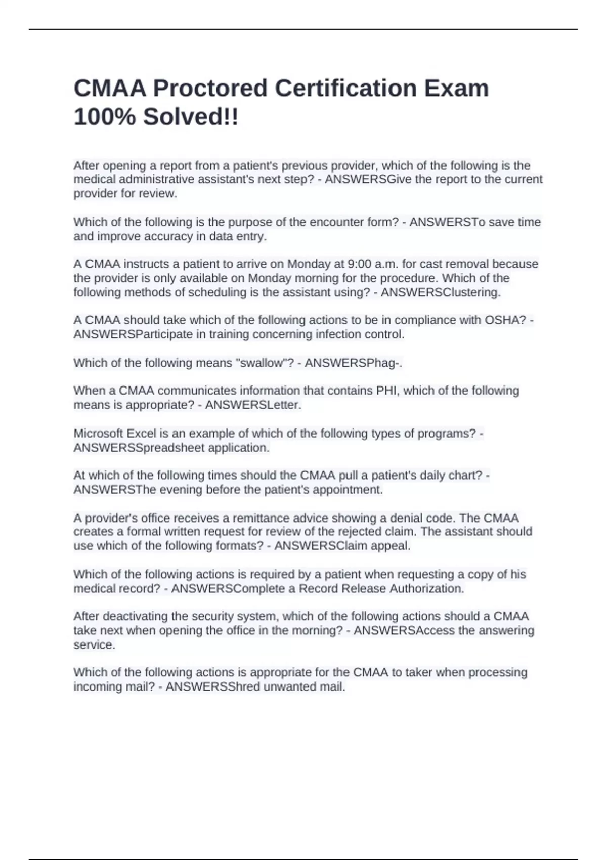 CMAA Proctored Certification Exam 100% Solved!!