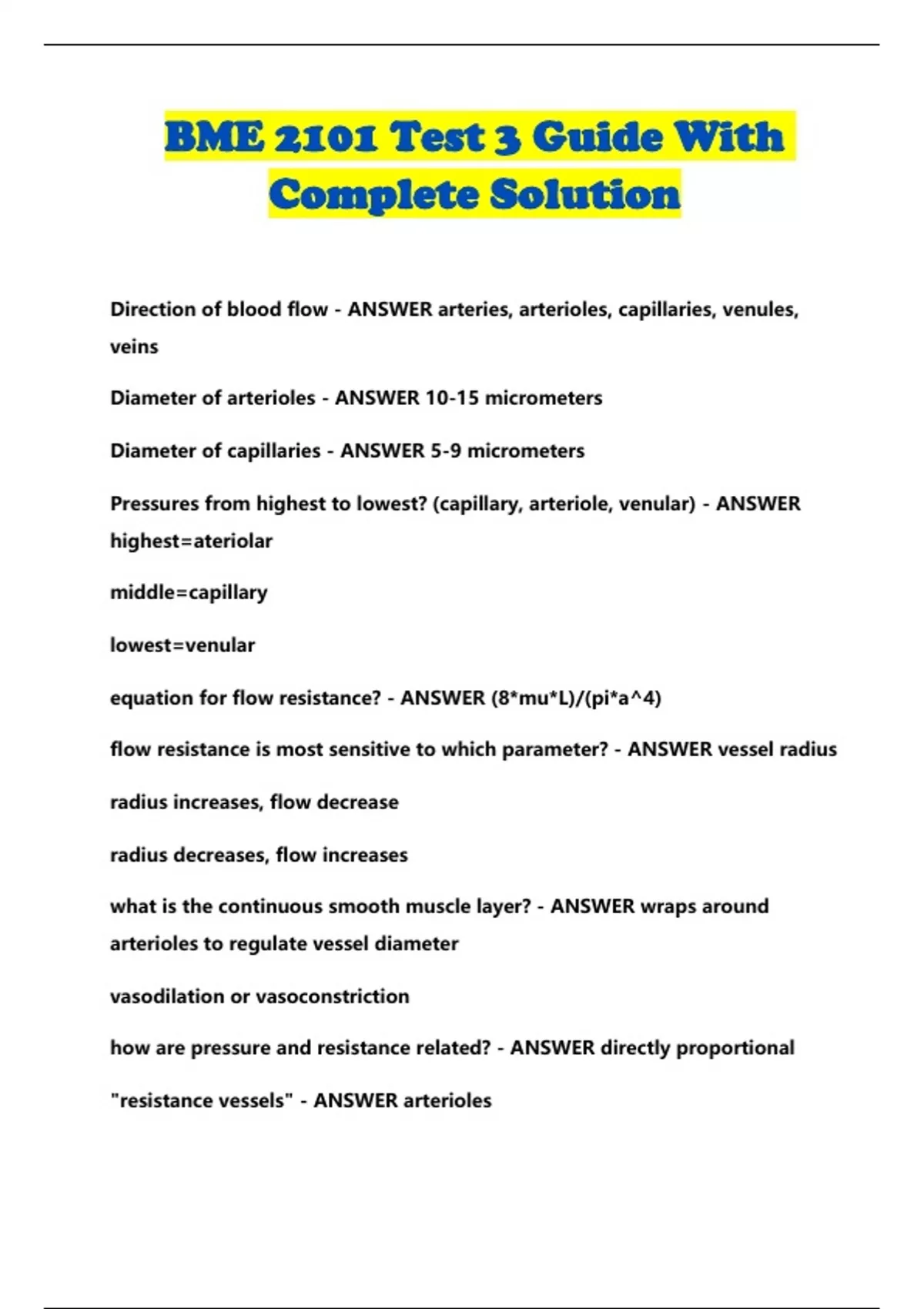flow resistance is most sensitive to which parameter? - ANSWER vessel radius
