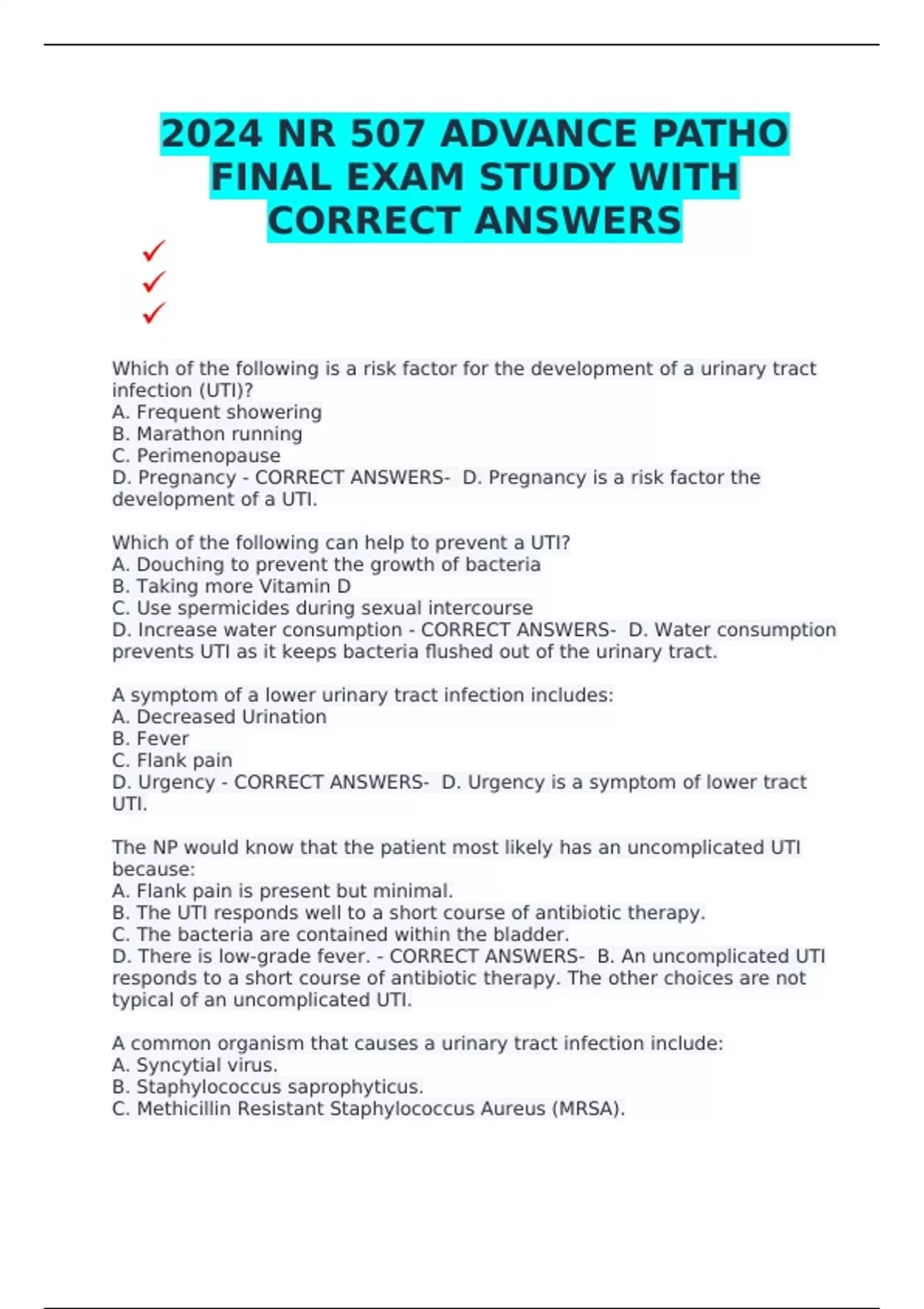 Uncomplicated UTI - CORRECT ANSWERS- 1. Occurs in the normal urinary