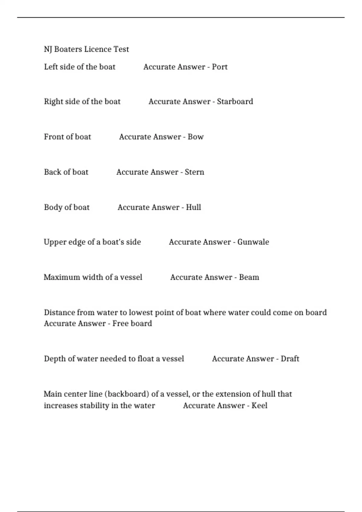 Front of boat Accurate Answer - Bow