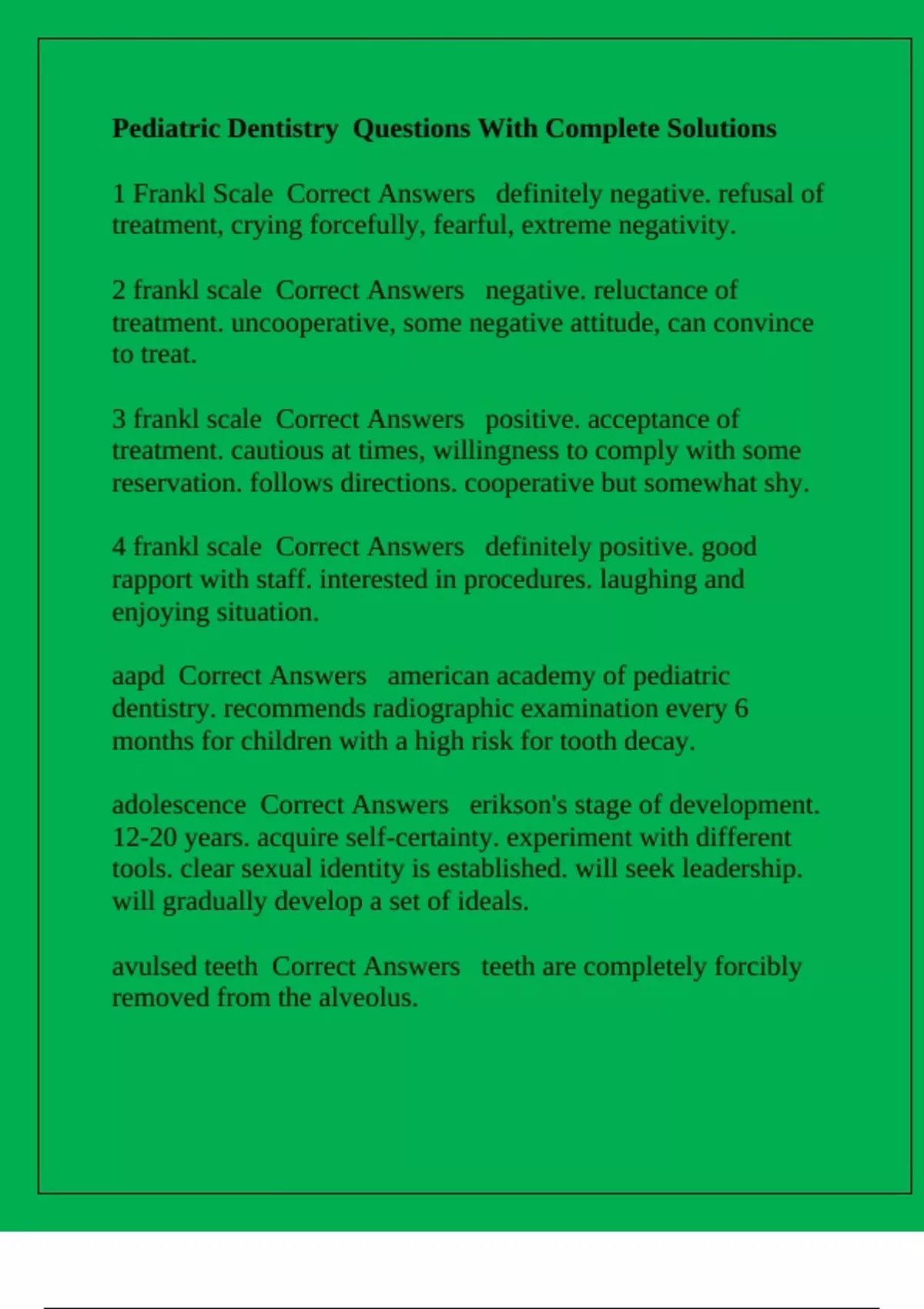 aapd Correct Answers american academy of pediatric