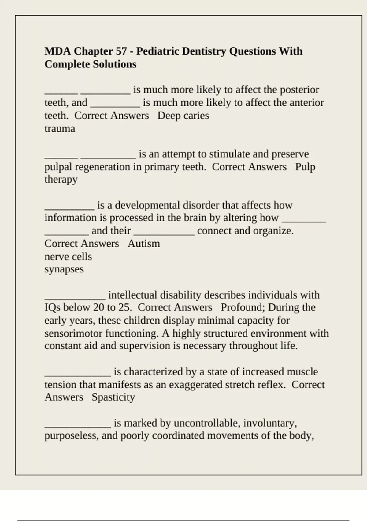 are present. Correct Answers Athetosis