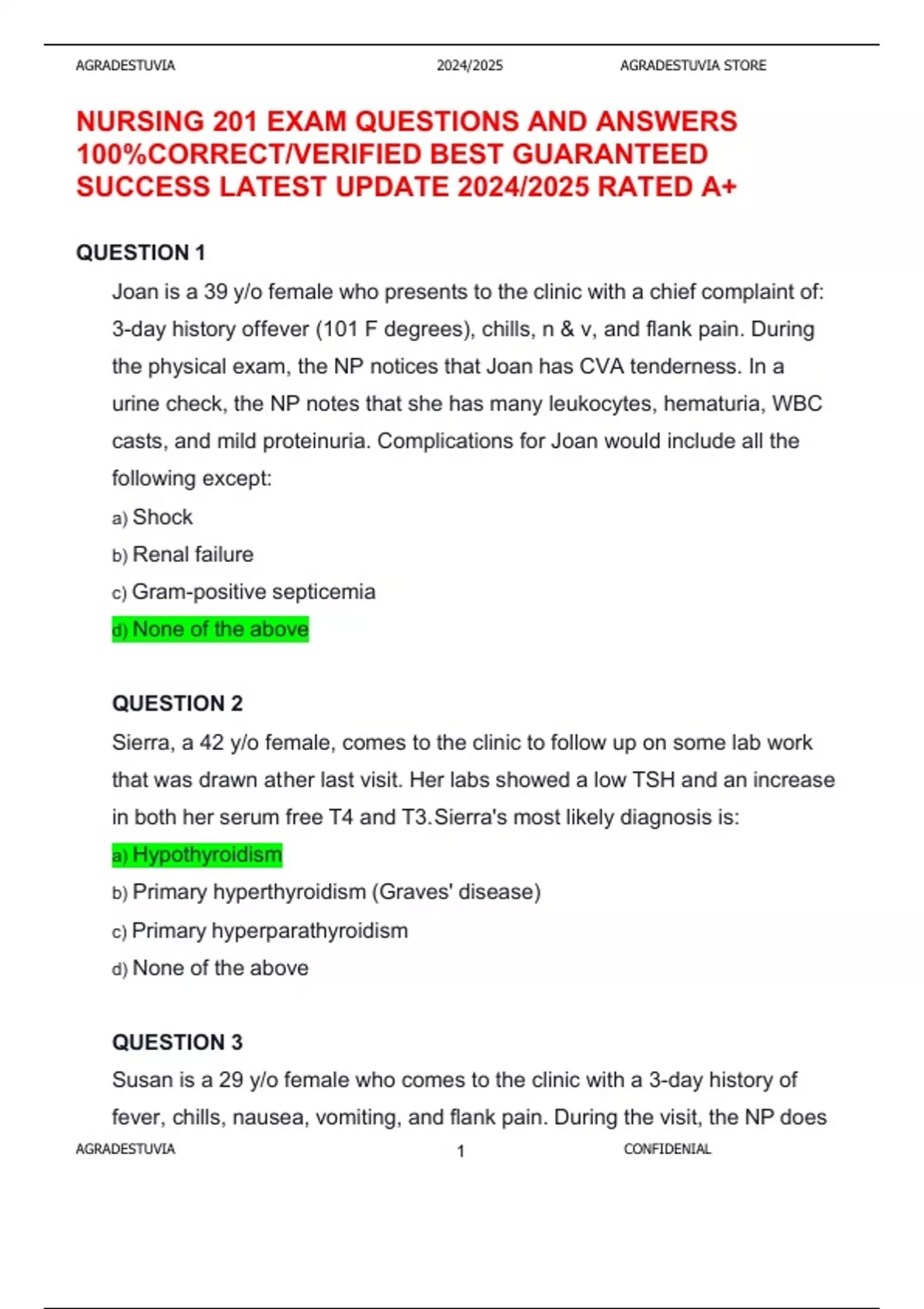NURSING 201 EXAM QUESTIONS AND ANSWERS