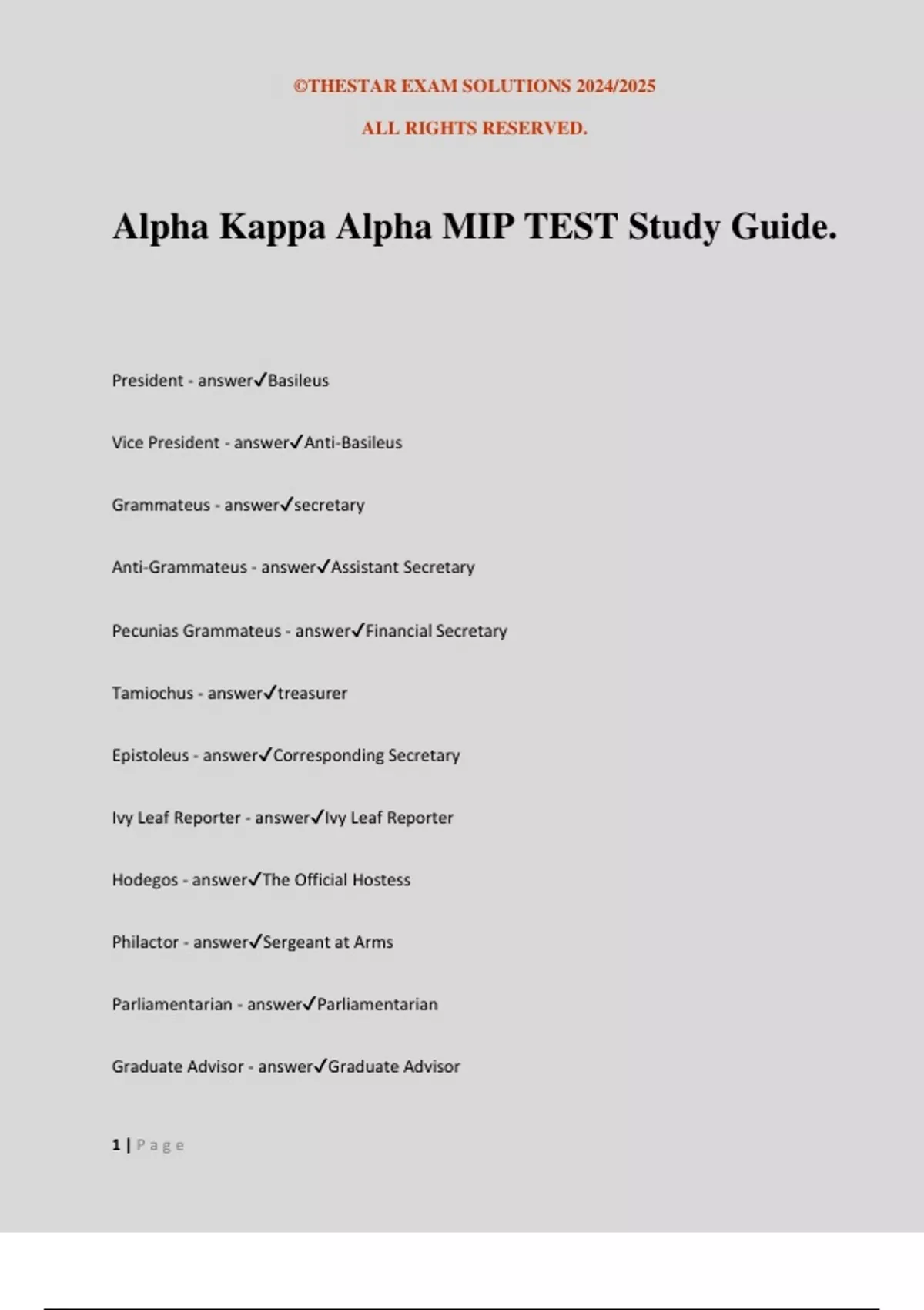 Alpha Kappa Alpha MIP TEST Study Guide.