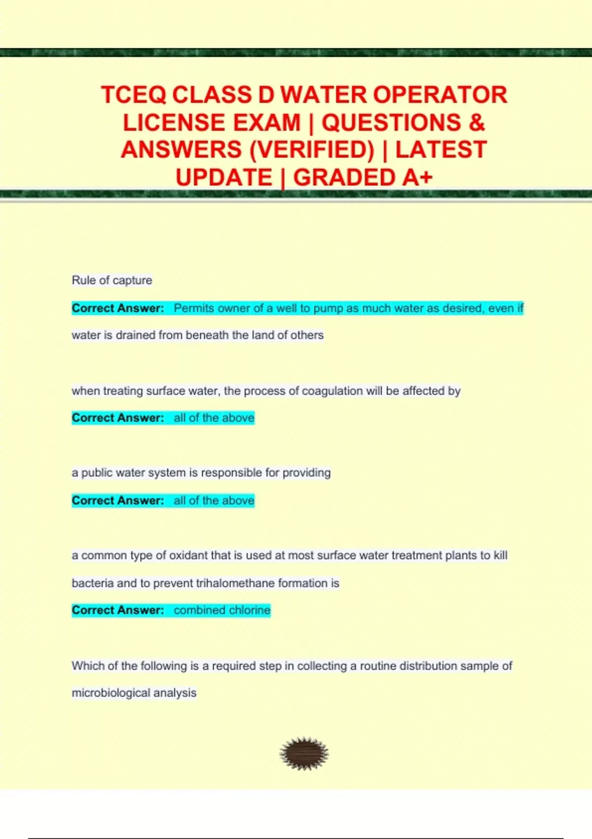 NURSING 201 EXAM QUESTIONS ANDANSWERS100%CORRECT/VERIFIED BEST GUARANTEEDSUCCESS LATEST UPDATE 2024/2025 RATEDA+QUESTION 1 Joan is a 39 y/o female who presents to the clinic with a chief complaint of: 3-day history offever (101 F degrees), chills, n & v, and flank pain. Duringthe physical exam, the NP notices that Joan has CVA tenderness. Inaurine check, the NP notes that she has many leukocytes, hematuria, WBCcasts, and mild proteinuria. Complications for Joan would includeall thefollowing except: a) Shock b) Renal failure c) Gram-positive septicemia d) None of the above QUESTION 2 Sierra, a 42 y/o female, comes to the clinic to follow up on somelabworkthat was drawn ather last visit. Her labs showed a low TSHand anincreasein both her serum free T4 and T3.Sierra's most likely diagnosis is: a) Hypothyroidism b) Primary hyperthyroidism (Graves' disease) c) Primary hyperparathyroidism d) None of the above QUESTION 3 Susan is a 29 y/o female who comes to the clinic with a 3-day historyof fever, chills, nausea, vomiting, and flank pain. During the visit, theNPdoes AGRADESTUVIA 2024/2025 AGRADESTUVIA STORE AGRADESTUVIA 2 CONFIDENIAL a urine dipstick and discoverthat Susan is positive for nitrites, leukocytes, and >10 WBCs. The physical exam reveals a CVA tenderness. Within 2 weeks, Susan returns to the clinic andacultureof her urine shows she has the same bacteria as when the NPfirst sawher.This would be referred toas: a) Relapsing UTI b) Recurring UTI c) Persistent UTI d) None of the above QUESTION 4 Juan, an 82 y/o male, is brought to the clinic by his daughter withsuddenLLQ pain, nausea,vomiting, diarrhea, or constipation. The patient hasatemperature of 100.4 and reports blood in stool. Juan's most likelydiagnosis is: a) PUD b) Acute diverticulitis c) Acute pancreatitis d) Hepatitis QUESTION 5 Martin is a 73 y/o male who has a 50 pack/year history of smokingandcomes to the clinic for his annual physical. As you are leading himbacktothe exam room you note that he has dyspnea with minimal cough, abarrel chest, and appears to have lost weight since his last visit. Your physical exam confirms a 20 lb. weight loss and more noticeable pursedlipbreathing. Given Martin's condition, the first line treatment wouldbeall the AGRADESTUVIA 2024/2025 AGRADESTUVIA STORE AGRADESTUVIA 3 CONFIDENIAL following except: a) Albuterol b) Salmeterol c) Levalbuterol d) Metaproterenol QUESTION 6 Wen is a 48 y/o female who comes to the clinic with fatigue, weight gain, cold intolerance,constipation, and menstrual abnormalities. TheNPordersa TSH and free serum T4 and thyroid peroxidase antibody (TPO). TheTSH is 6.0 mU/L, the T4 is low, and the TPO is high. Her most likelydiagnosis is: a) Hyperthyroidism b) Hyperparathyroidism c) Hashimoto's thyroiditis d) None of the above QUESTION 8 Risk factors for Alcohol Use Disorder include which of the following?a) Family history AGRADESTUVIA 2024/2025 AGRADESTUVIA STORE AGRADESTUVIA 4 CONFIDENIAL b) Stressful life events c) Low socioeconomic status d) All of the above e) A & B only QUESTION 9 Scott is a 16 y/o male who presents to the clinic with a tender testicular mass, but no pain.He has previously been diagnosed with cryptorchidism. His most likely diagnosis is: a) Testicular torsion b)Testicular cancer c) Hodgkin lymphoma d) A & B only QUESTION 10 Diagnostic studies for Type II diabetes mellitus would include whichof the following?a) HbA1C (>6.5%) b) Fasting plasma glucose (= to or >126 mg/dL) c) Random plasma glucose (>200 mg/dL) d) All of the above e) None of the above QUESTION 11 Marty is an 18y/o outdoorsman who loves hiking in the woods. Martynotesthat he was hiking about 10 days ago and now he has a red rashwitha AGRADESTUVIA 2024/2025 AGRADESTUVIA STORE AGRADESTUVIA 5 CONFIDENIAL central clearing that looks like atarget. The rash is rough and hot tothetouch. He now has flu-like symptoms. Treatment forMarty's conditionwouldinclude all the following drugs, except: a) Doxycycline b) Amoxicill