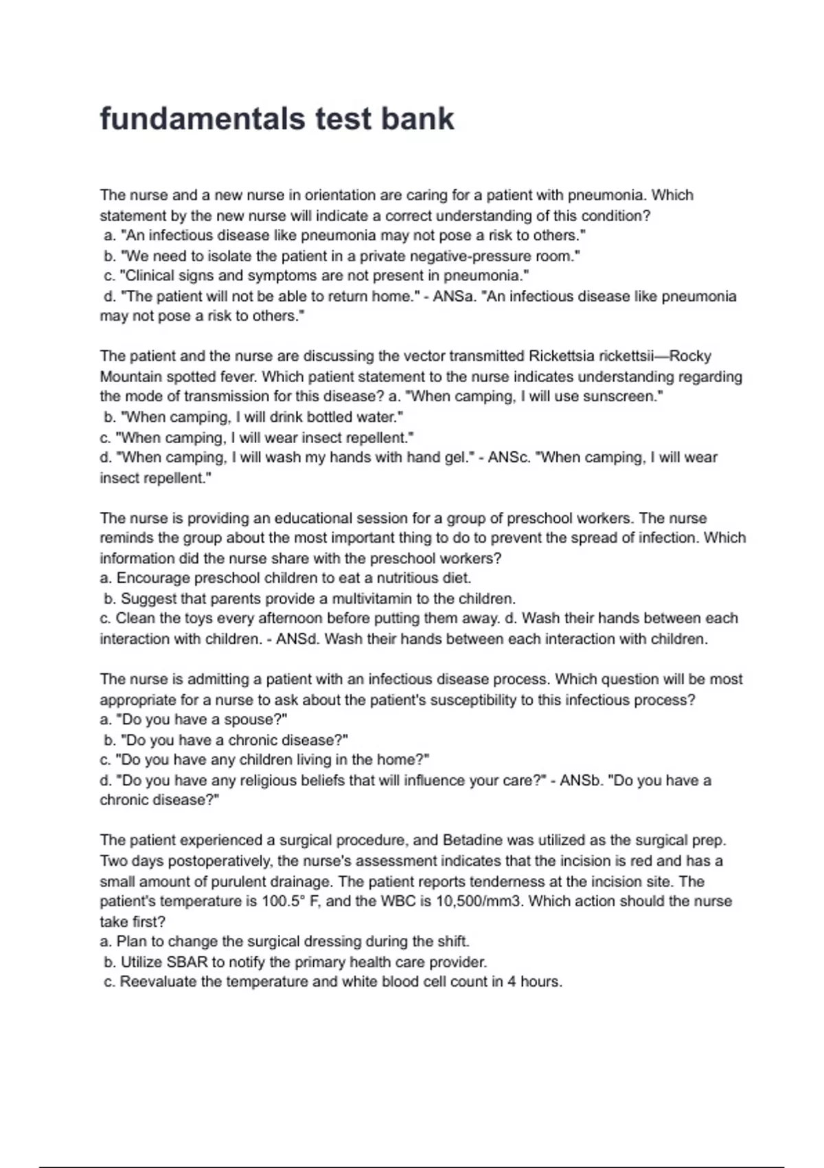 fundamentals test bank -Questions and Answers Graded A+ 2024/2o25