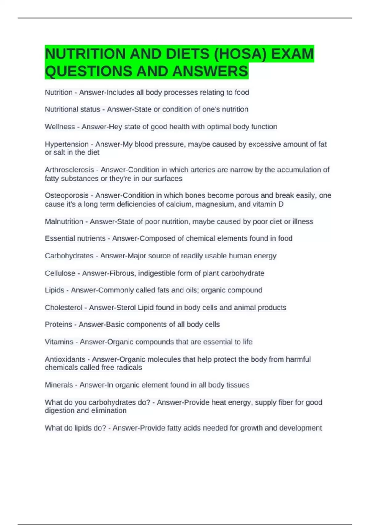 NUTRITION AND DIETS (HOSA) EXAM