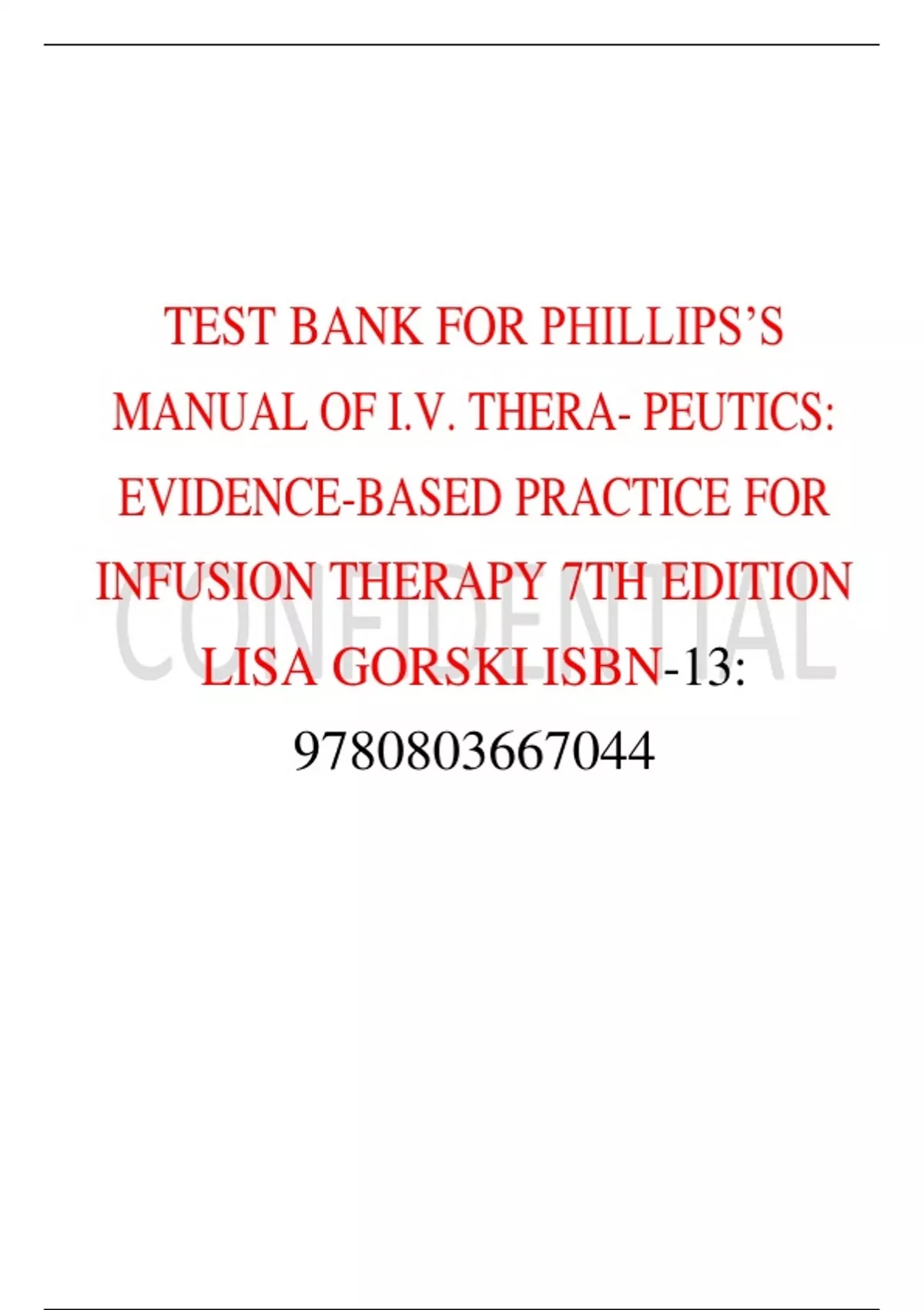 ,Test Bank for Phillips’s Manual of I.V. Therapeutics: Evidence-Based Practice for Infusion