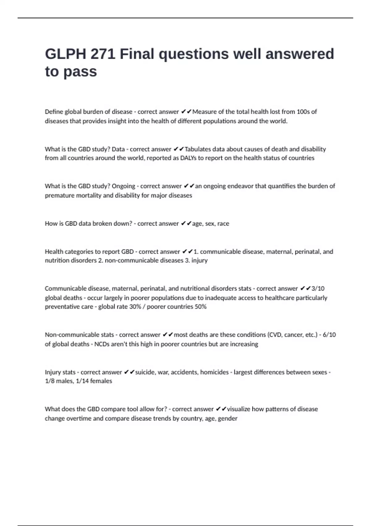 Define global burden of disease - correct answer ✔✔Measure of the total health lost from 100s of