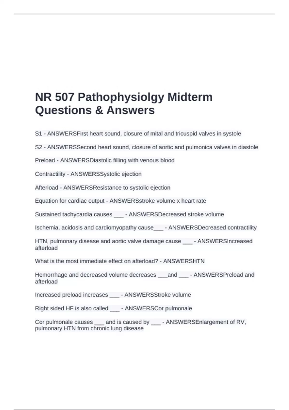 Afterload - ANSWERSResistance to systolic ejection