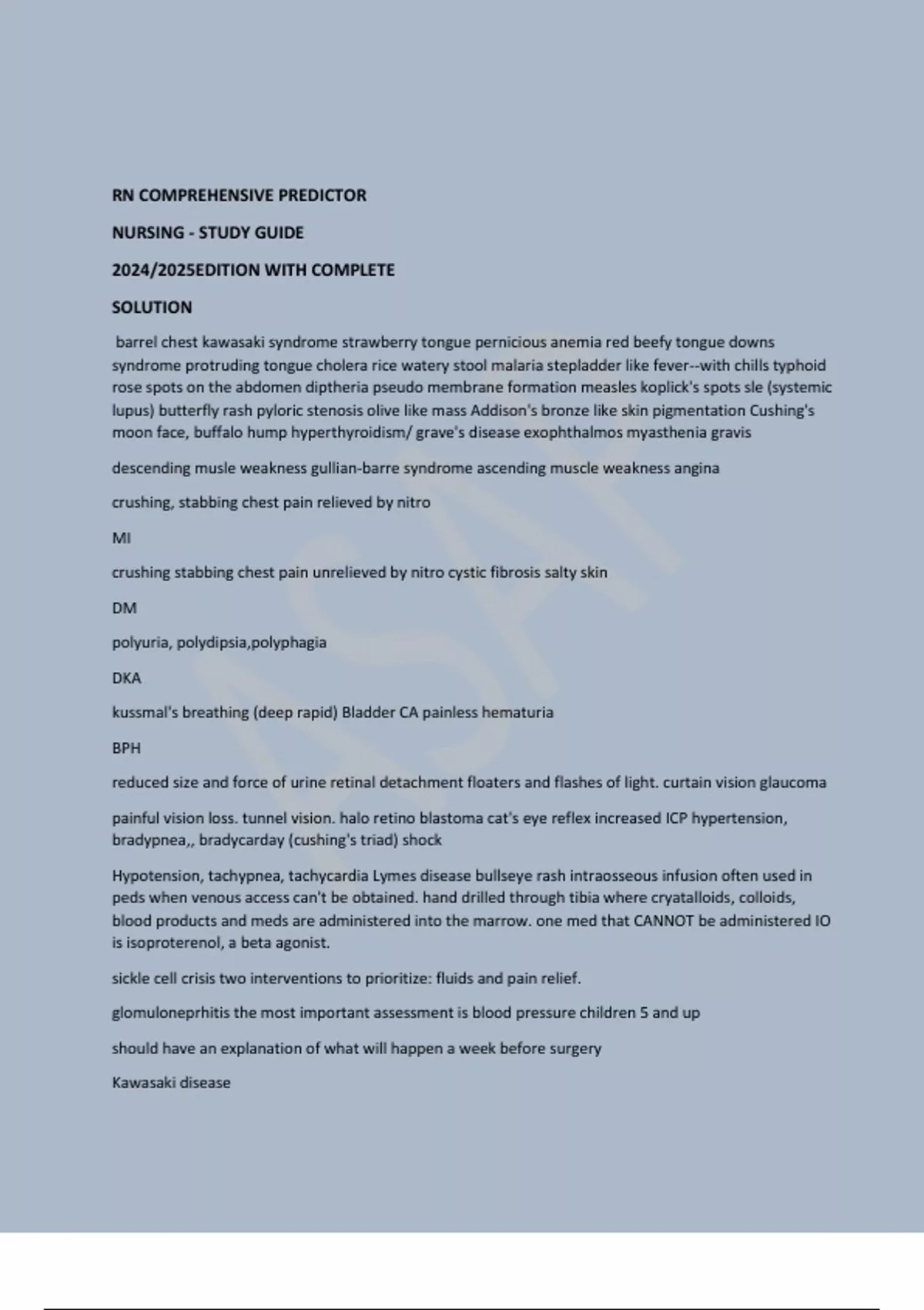 RN COMPREHENSIVE PREDICTOR NURSING - STUDY GUIDE