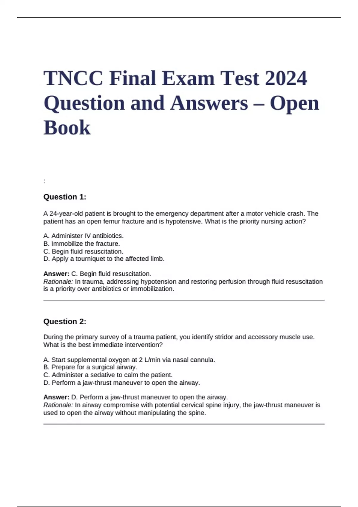 A 24-year-old patient is brought to the emergency department after a motor vehicle crash. The