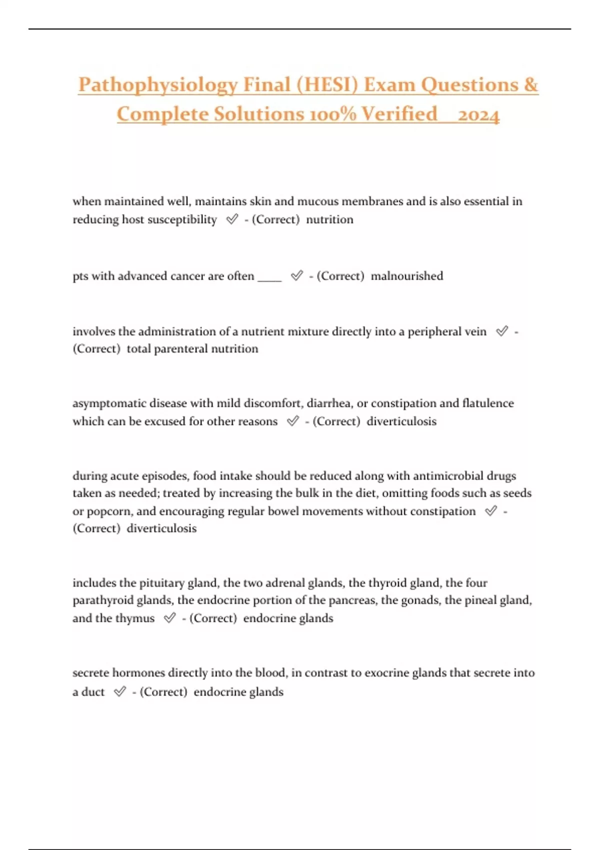 Pathophysiology Final (HESI) Exam Questions & Complete Solutions 100% Verified__2024