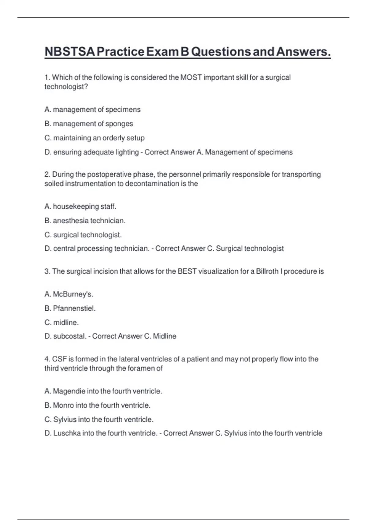 D. central processing technician. - Correct Answer C. Surgical technologist