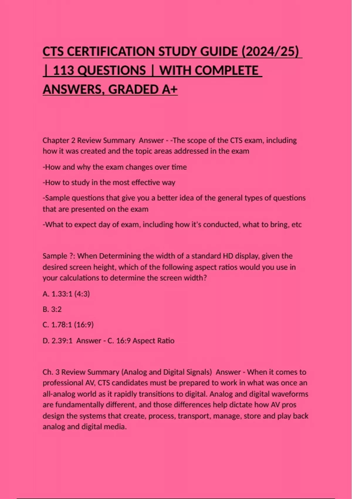 Chapter 2 Review Summary Answer - -The scope of the CTS exam, including