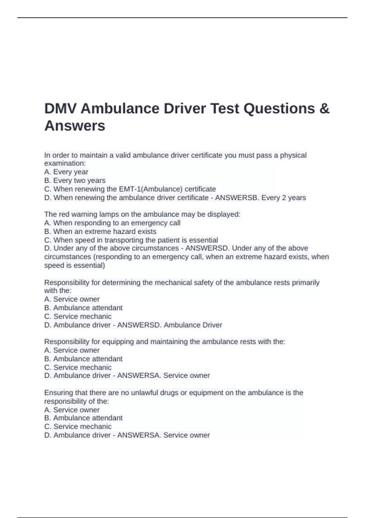 D. When renewing the ambulance driver certificate - ANSWERSB. Every 2 years