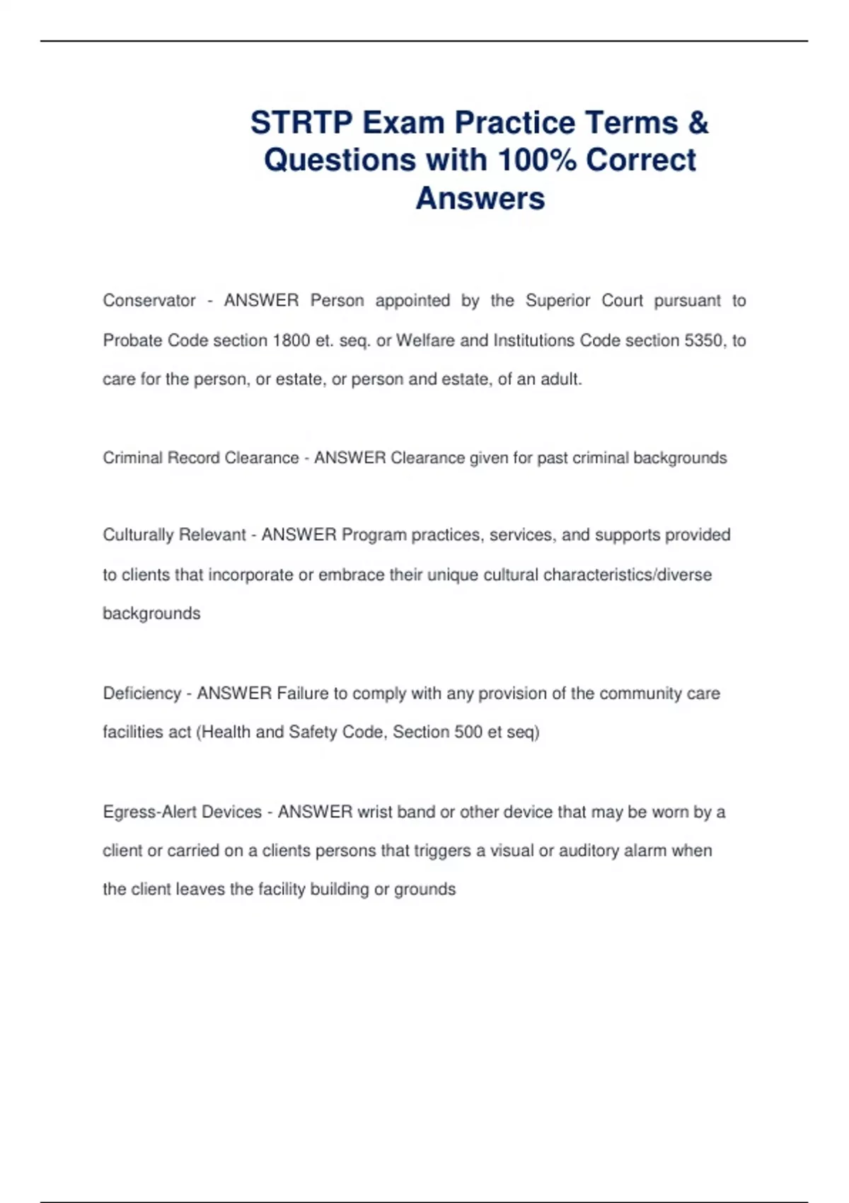 STRTP Exam Practice Terms & Questions with 100% Correct Answers