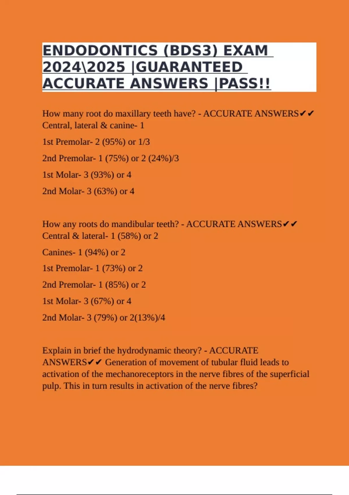 ENDODONTICS (BDS3) EXAM |GUARANTEED ACCURATE ANSWERS |PASS!!