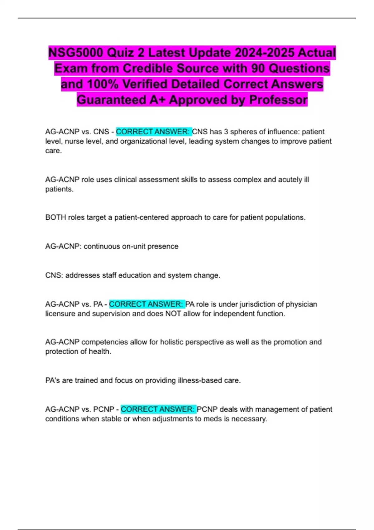 AG-ACNP vs. PA - CORRECT ANSWER: PA role is under jurisdiction of physician