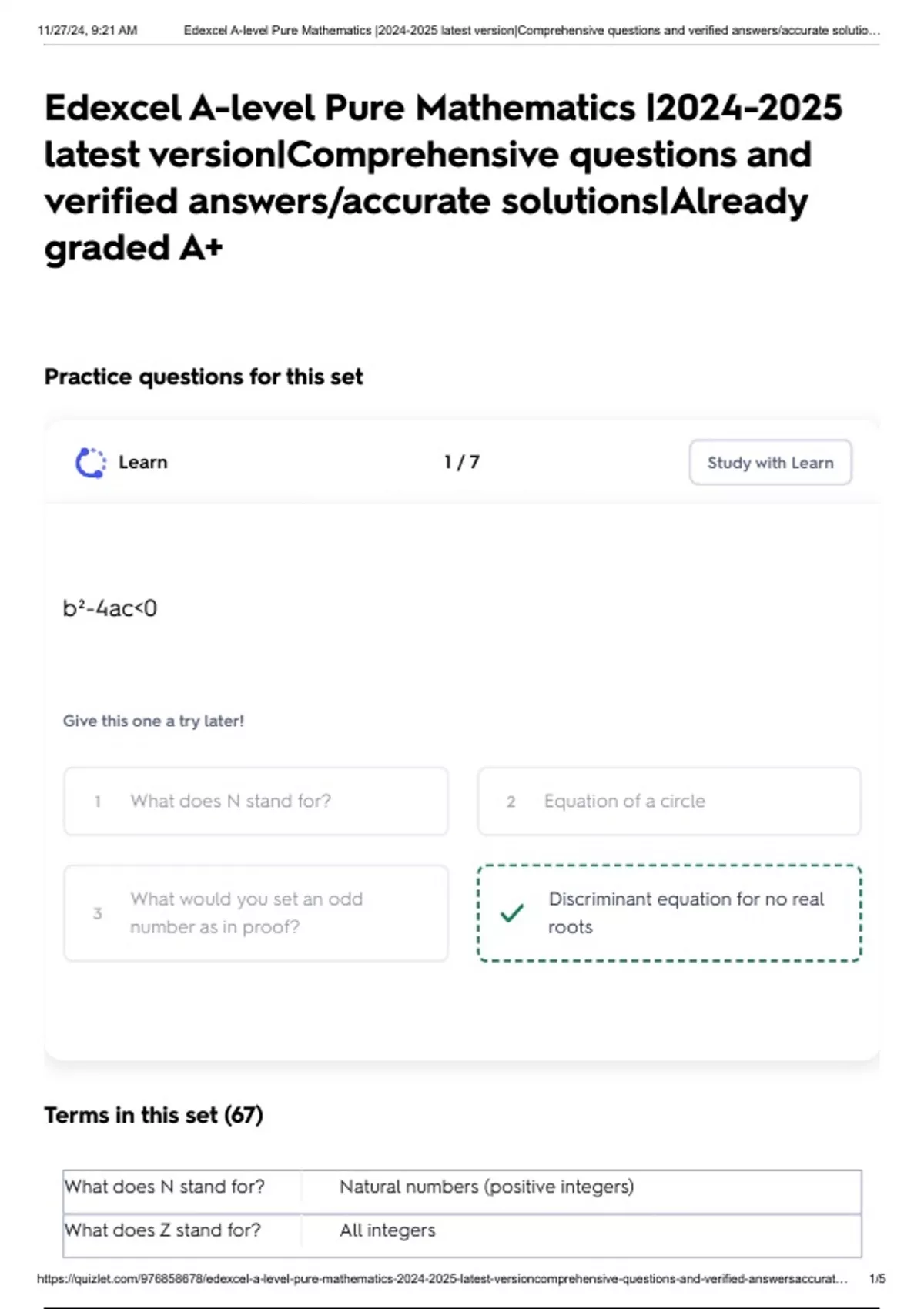 https://quizlet.com/976858678/edexcel-a-level-pure-mathematics-2024-2025-latest-versioncomprehensive-questions-and-verified-answersaccurat… 1/5