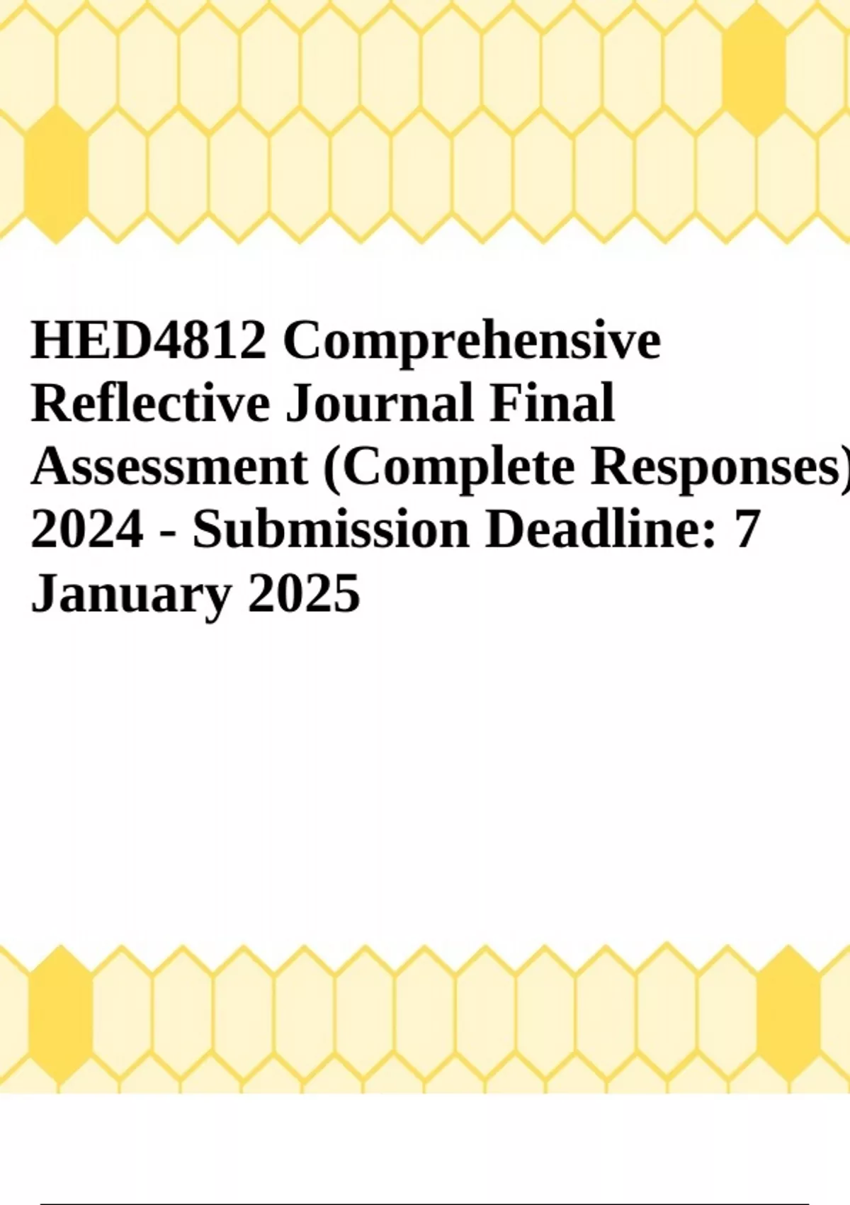 HED4812 Comprehensive Reflective Journal Final Assessment (Complete Responses) 2024 - Submission Deadline: 7 January 2025...Detailed work, solutions, memos, notes, and explanations..FOR ASSISTANCE WITH ASSIGNMENTS OR TO GET THE LATEST EXAM MATERIALS, KINDLY REACH OUT AT .