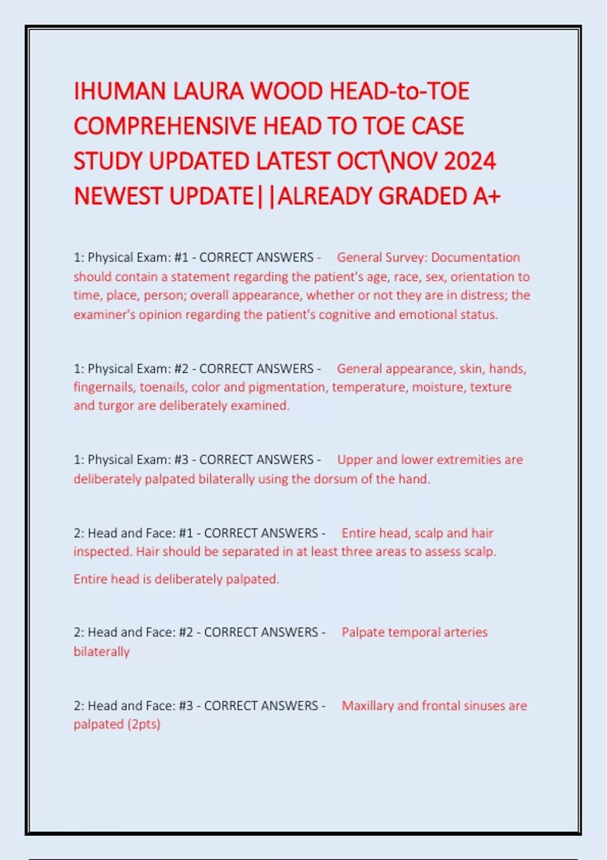 1: Physical Exam: #1 - CORRECT ANSWERS - General Survey: Documentation
