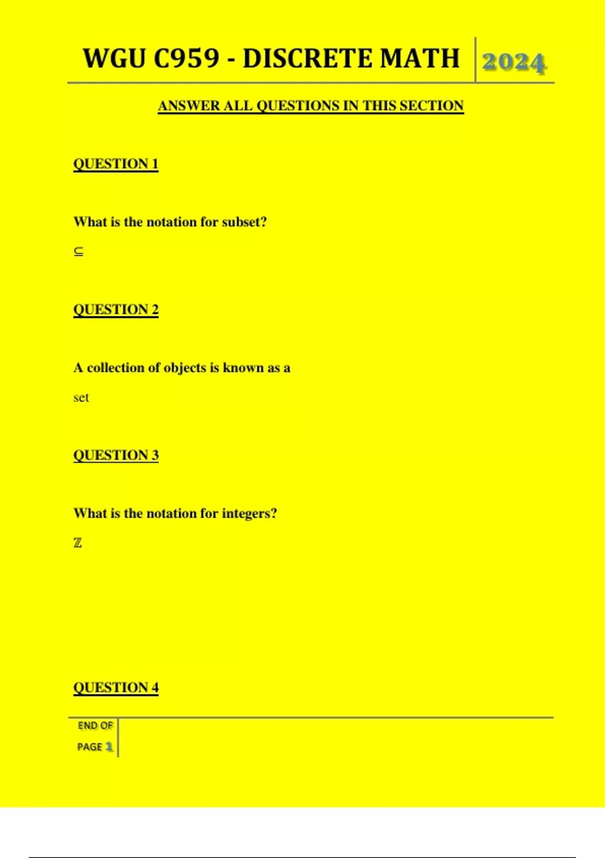 , WGU C959 - DISCRETE MATH 2024