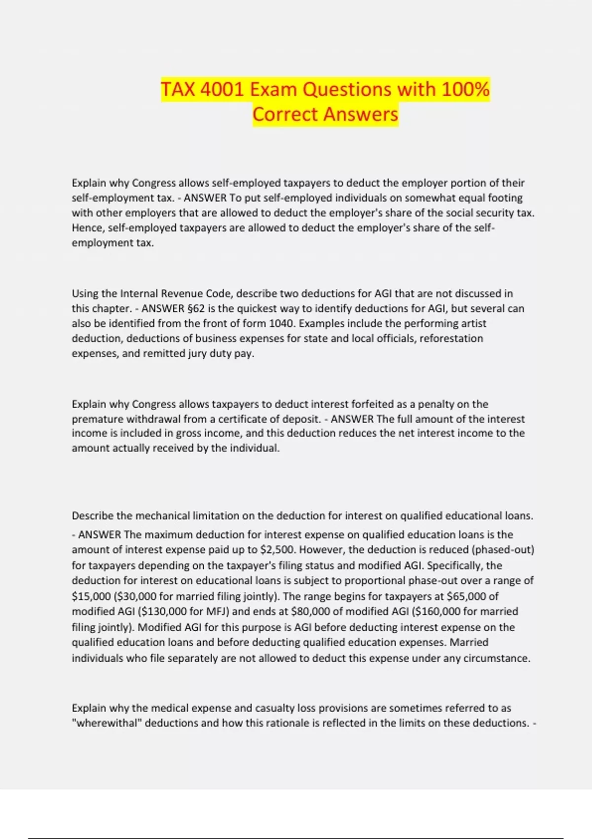 TAX 4001 Exam Questions with 100%