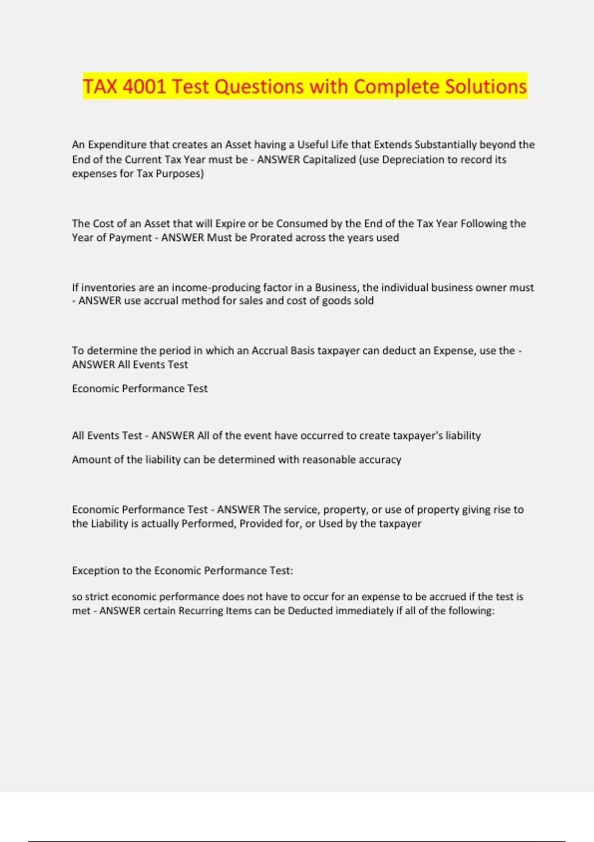 Economic Performance Test - ANSWER The service, property, or use of property giving rise to
