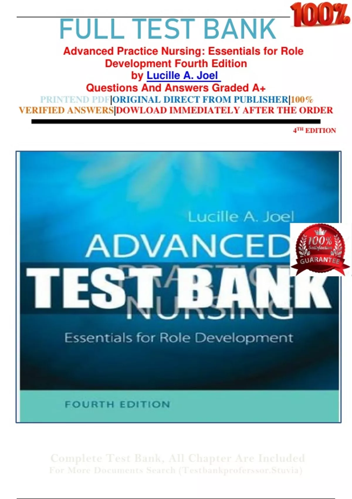 FULL TEST BANK Advanced Practice Nursing: Essentials for Role Development Fourth Edition Essentials for Role Development Fourth Edition by Lucille A. Joel Questions And Answers Graded A+