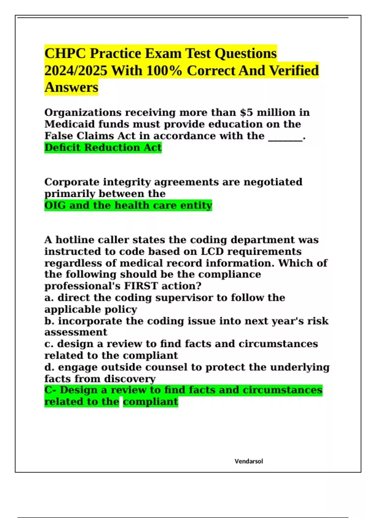 CHPC Practice Exam Test Questions