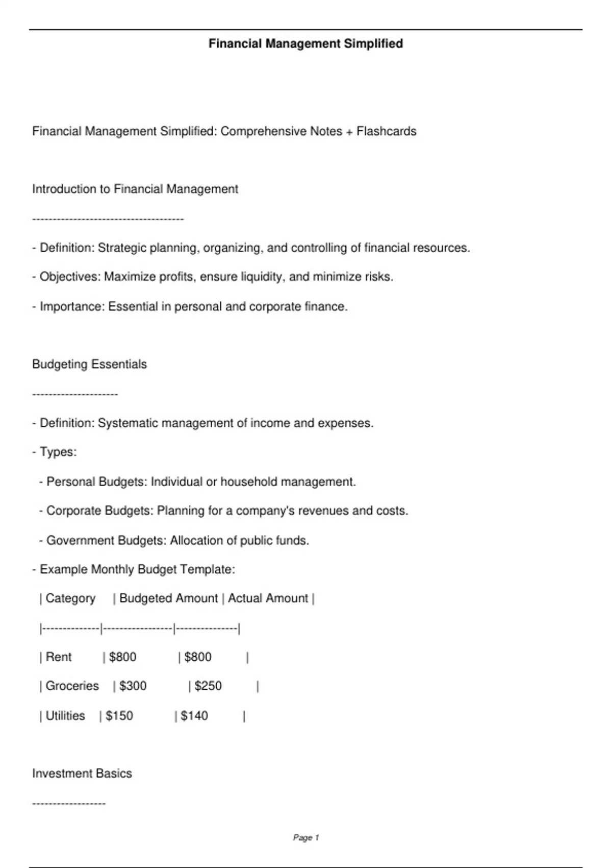 Financial Management Simplified: Comprehensive Notes + Flashcards
