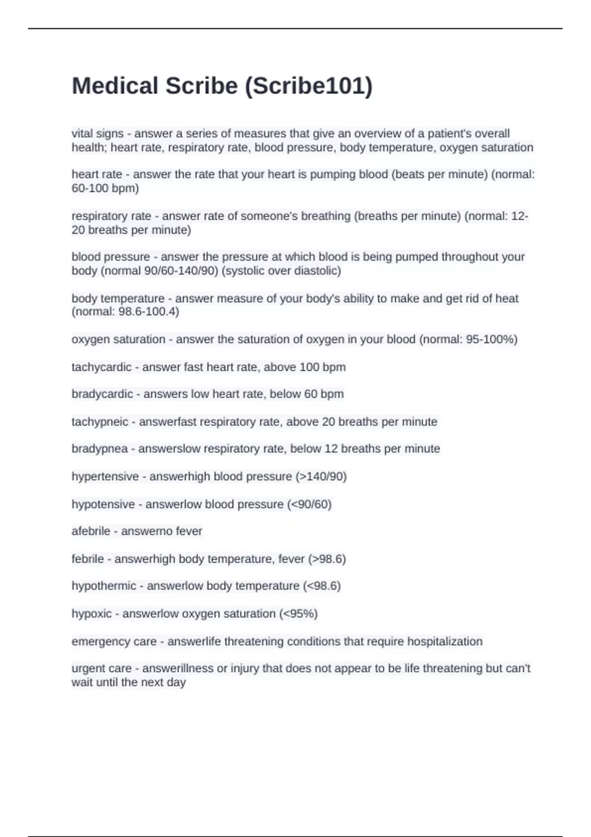 Medical Scribe (Scribe101) Questions and Answers 2024