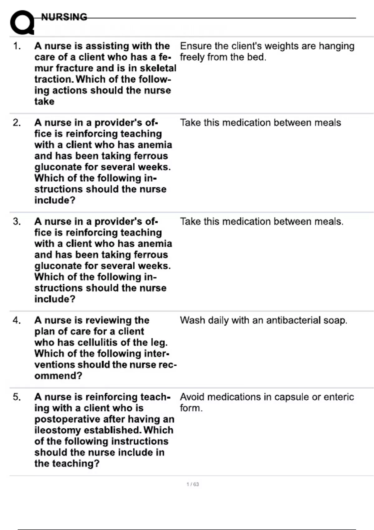 nursing exam elaborations questions answers