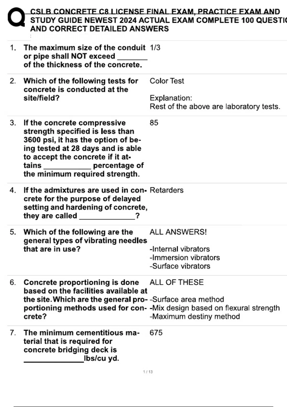 CSLB CONCRETE C8 LICENSE FINAL EXAM, PRACTICE EXAM AND STUDY GUIDE NEWEST 2024 Questions & answers | Exam (elaborations),100% satisfaction guarantee | Latest Update 2024/2025