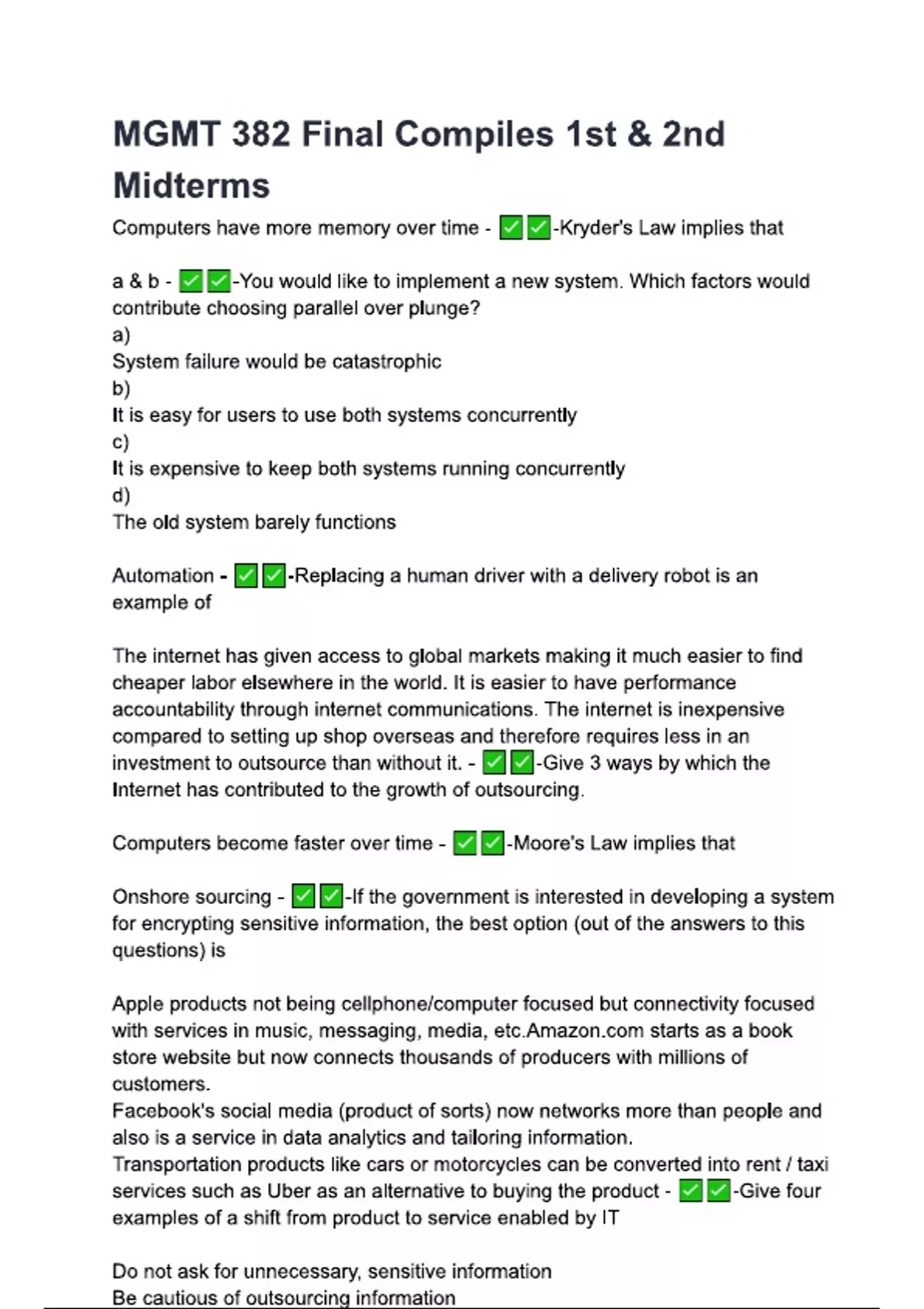 MGMT 382 Final Compiles 1st & 2nd Midterms Questions & answers | Exam (elaborations),100% satisfaction guarantee | Latest Update 2024/2025