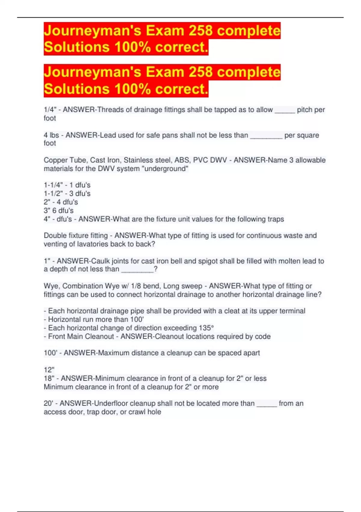 Copper Tube, Cast Iron, Stainless steel, ABS, PVC DWV - ANSWER-Name 3 allowable