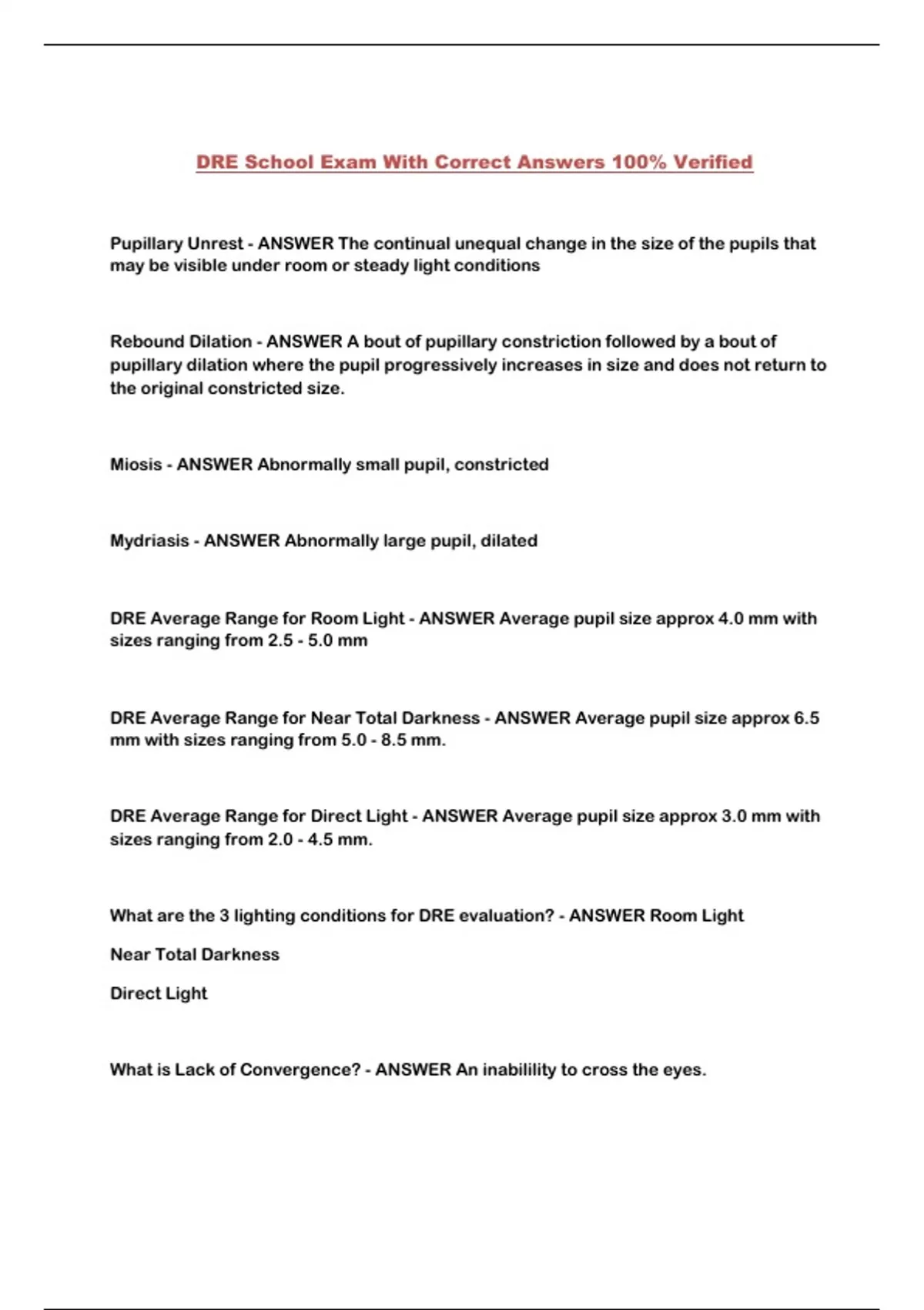 DRE School Exam With Correct Answers 100% Verified