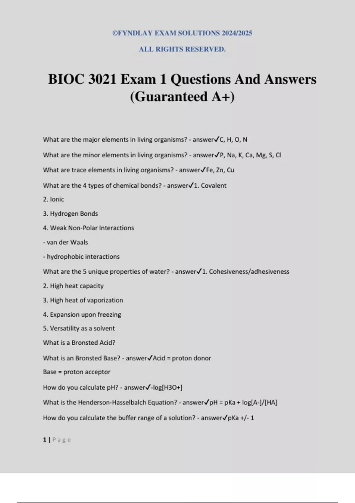 BIOC 3021 Exam 1 Questions And Answers (Guaranteed A+)