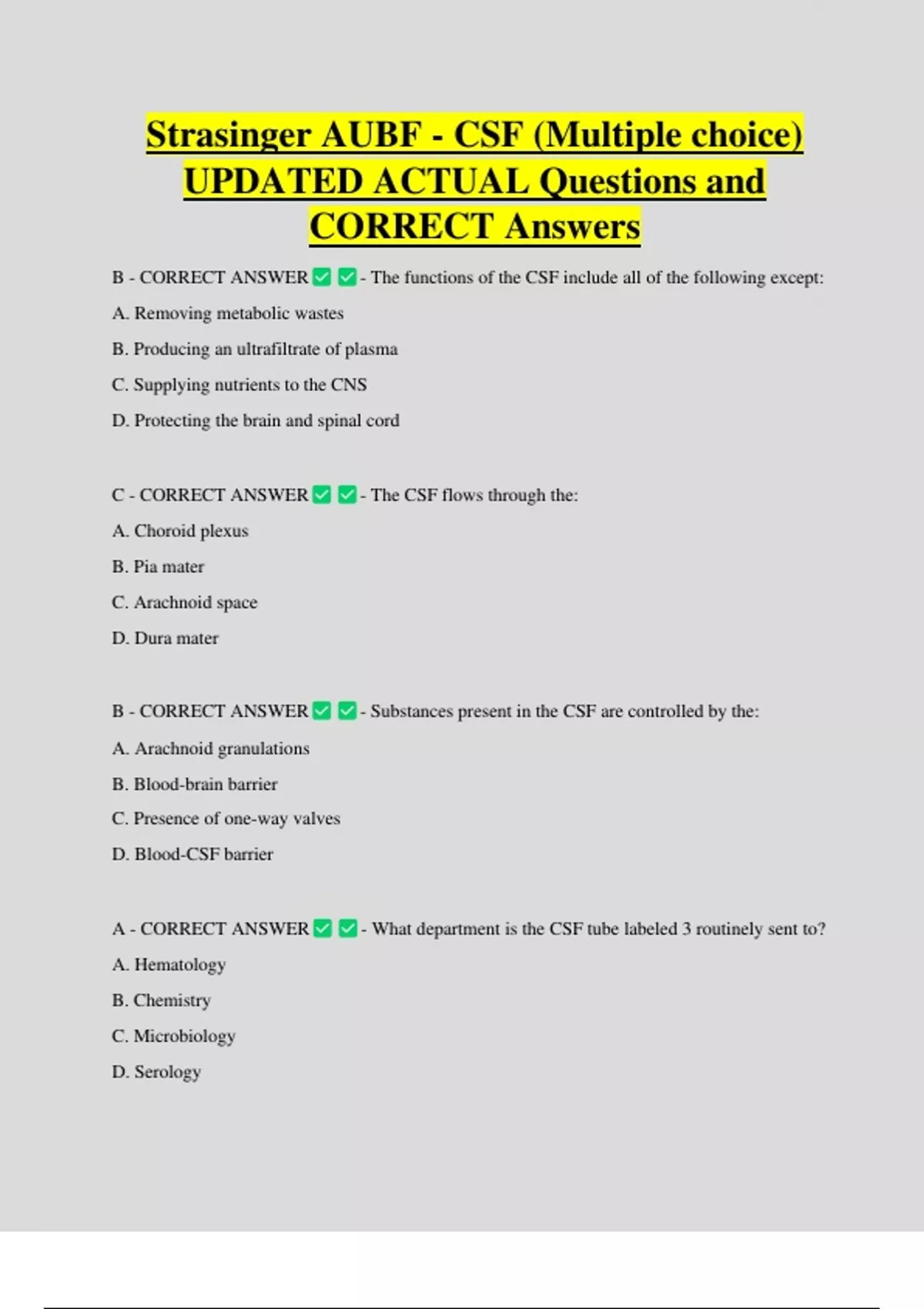 , B - CORRECT ANSWER - The CSF tube that should be kept at room temperature is: