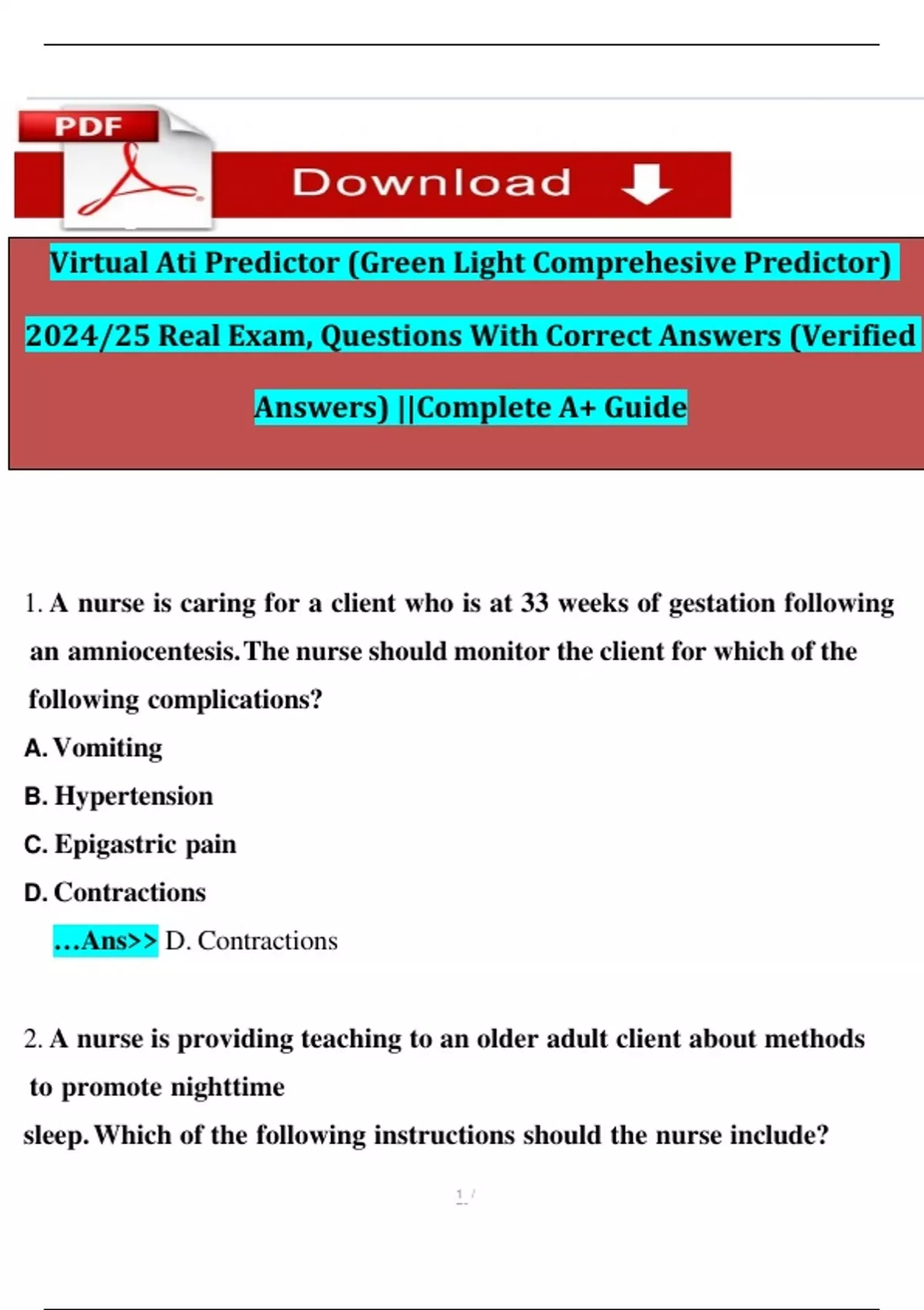 Virtual Ati Predictor (Green Light Comprehesive Predictor) 2024/25 Real Exam, Questions With Correct Answers (Verified Answers) ||Complete A+ Guide