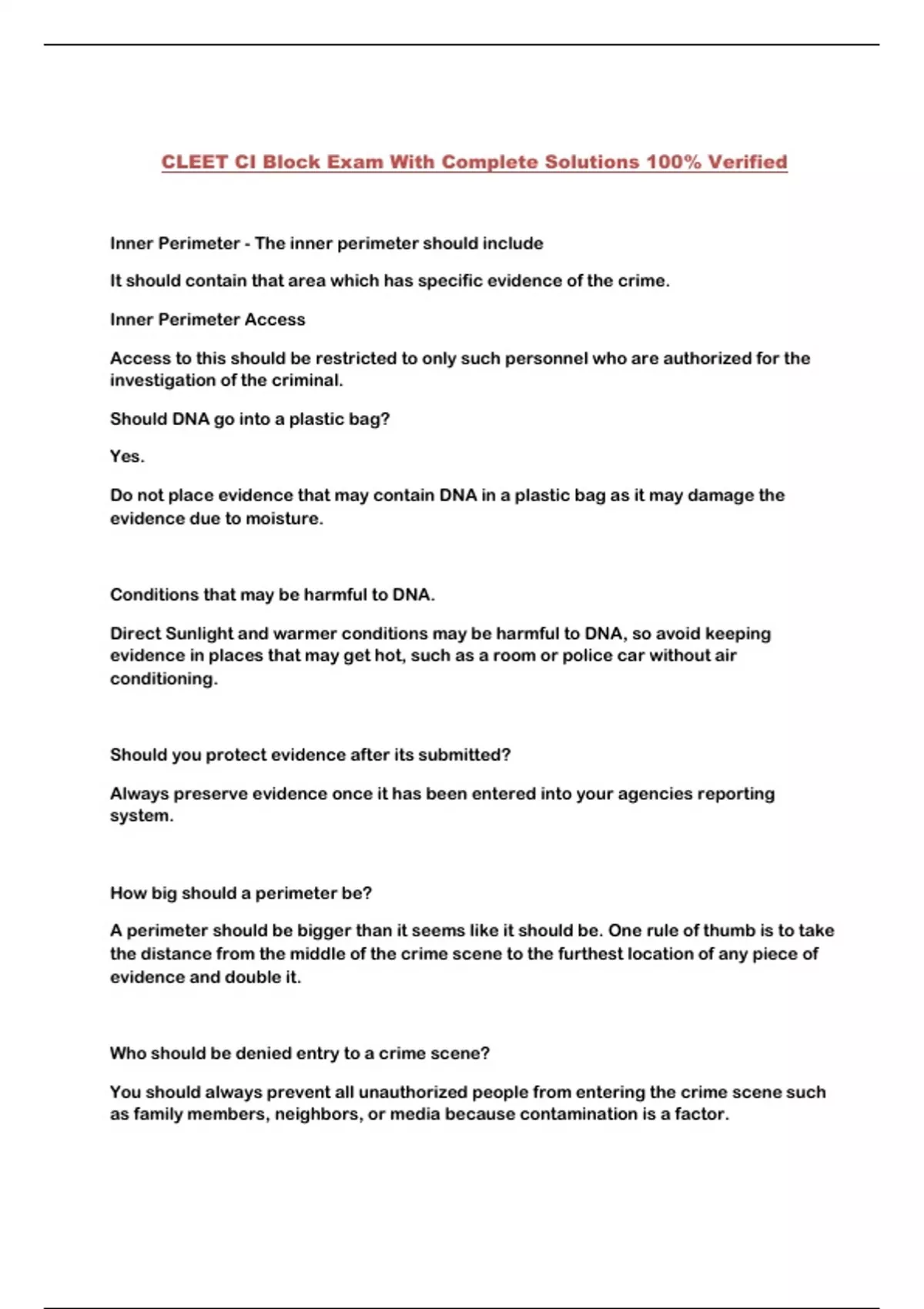 CLEET CI Block Exam With Complete Solutions 100% Verified