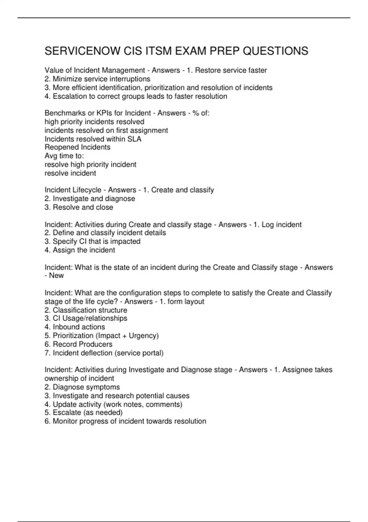 Incident Lifecycle - Answers - 1. Create and classify