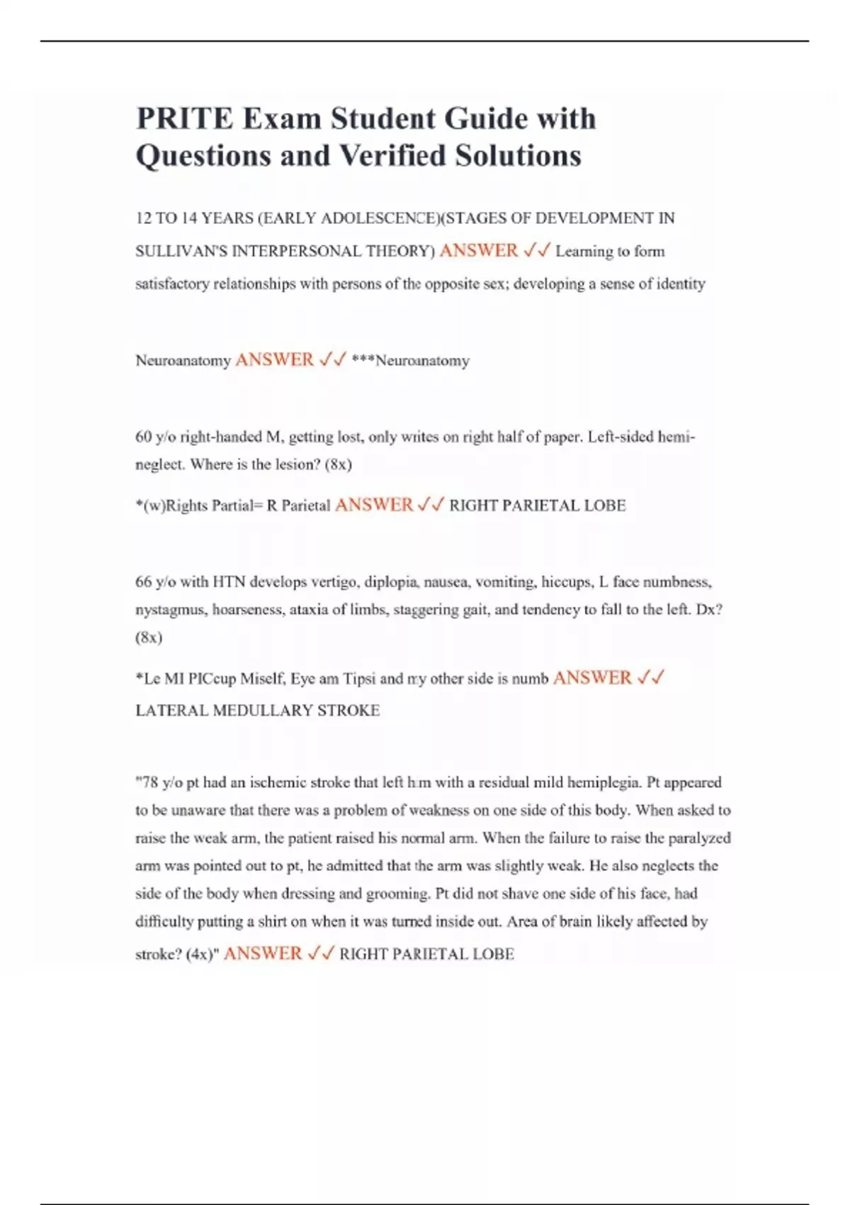 PRITE Exam Student Guide with Questions and Verified Solutions