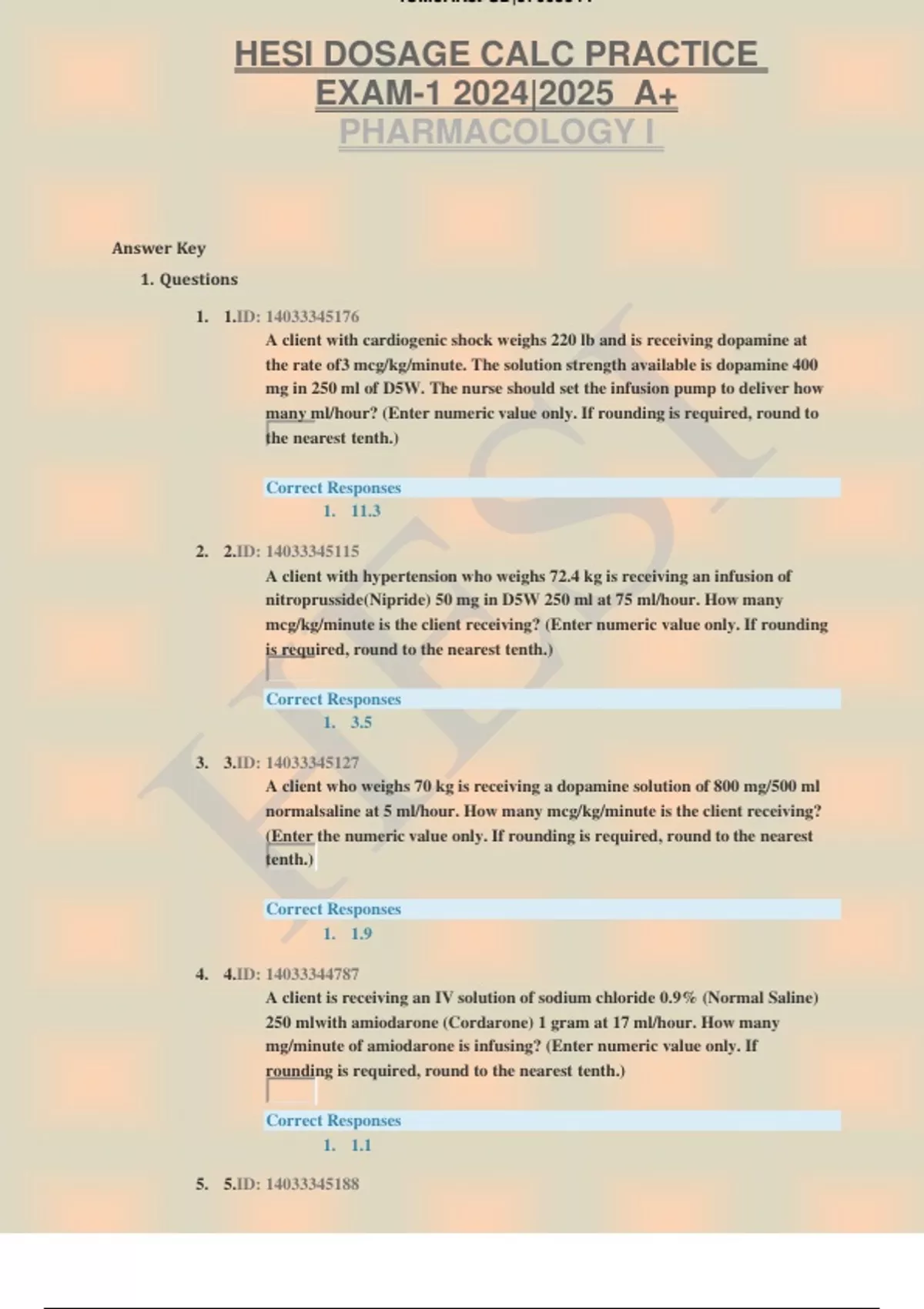 normal saline at 5 ml/hour. How many mcg/kg/minute is the client receiving?