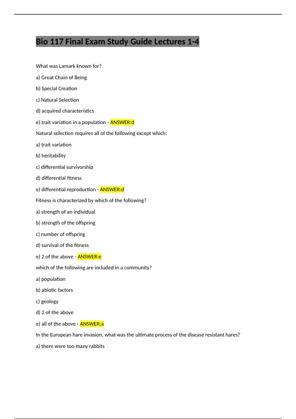 Bio 117 Final Exam Study Guide Lectures 1-4