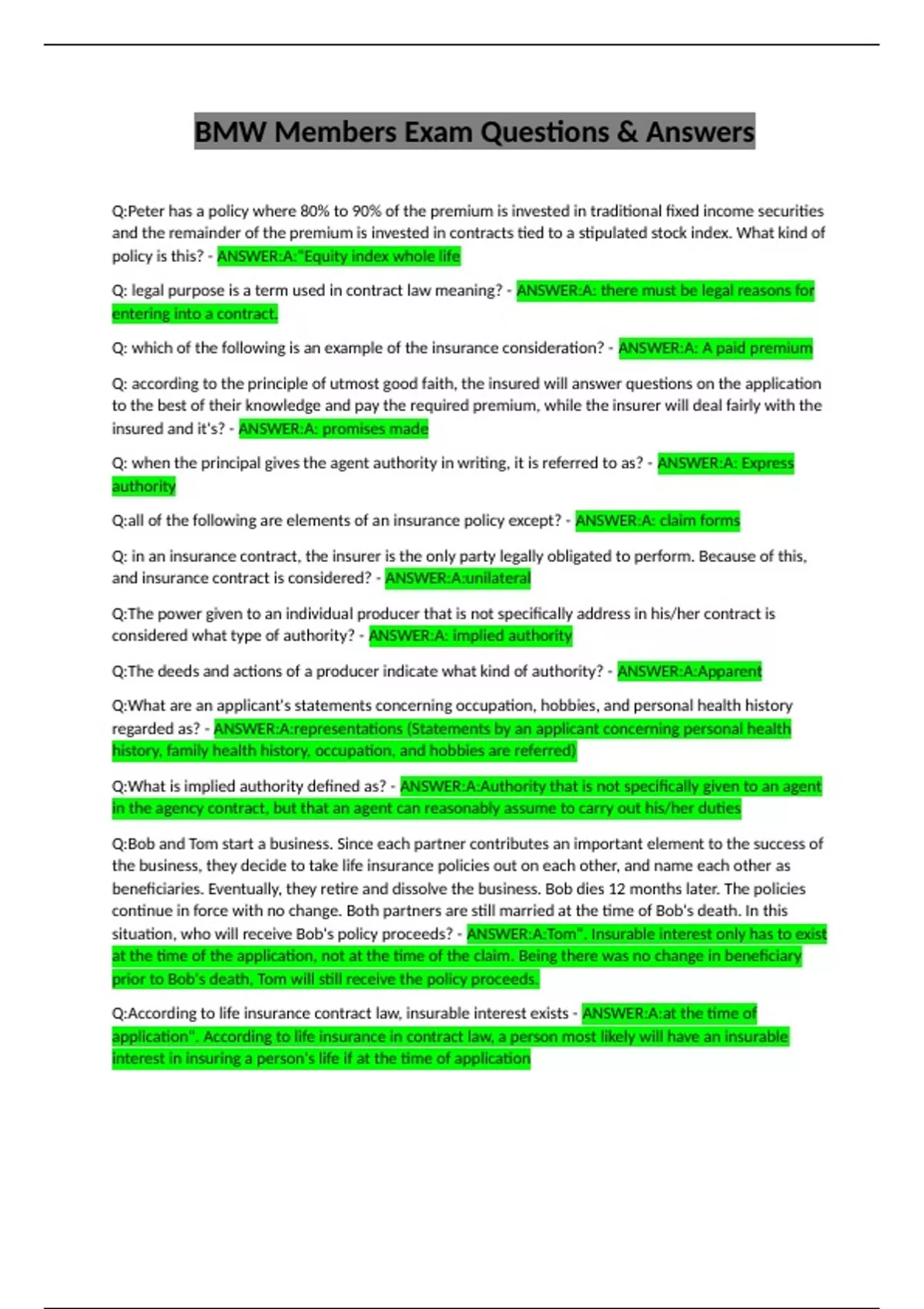 , Q:Which of the following BEST describes a conditional insurance contract? - ANSWER:A:A contract that