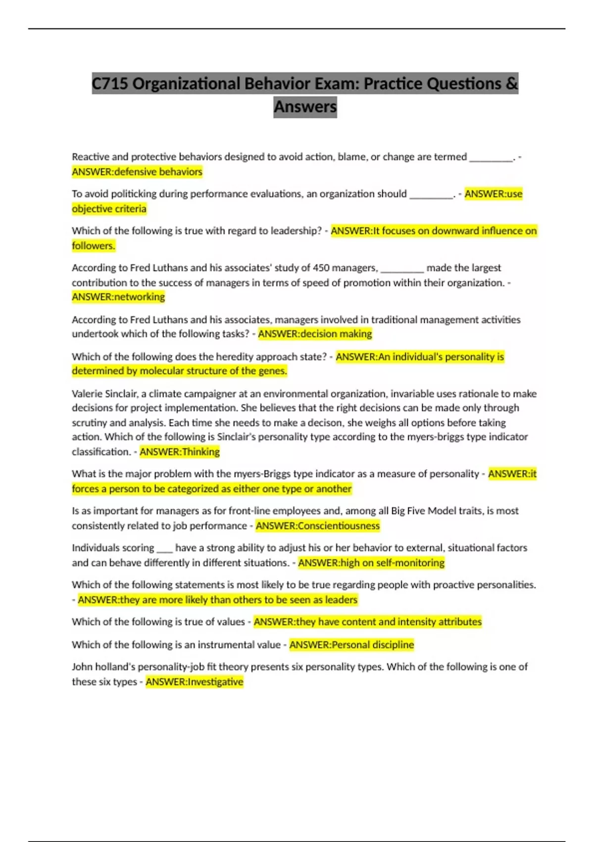 C715 Organizational Behavior Exam: Practice Questions & Answers