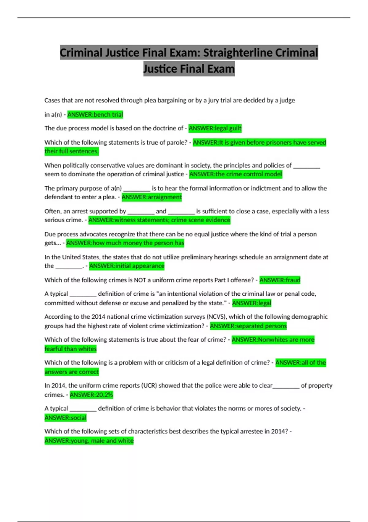 Criminal Justice Final Exam: Straighterline Criminal Justice Final Exam