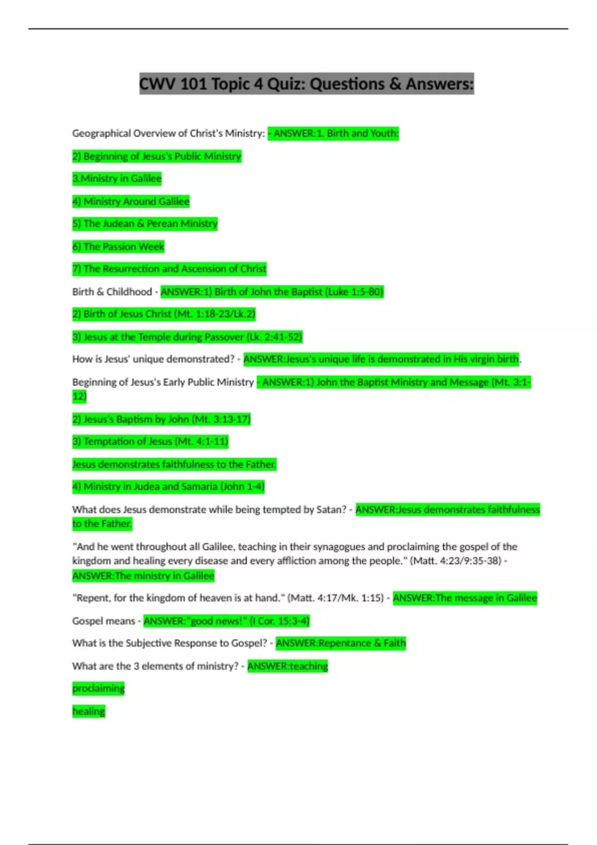 Geographical Overview of Christ's Ministry: - ANSWER:1. Birth and Youth: